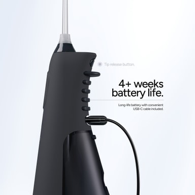 En 360-graders roterende dyse lar deg enkelt justere vannstrålens vinkel, noe som sikrer grundig rengjøring av vanskelig tilgjengelige områder mellom tenner og rundt tannregulering, implantater eller annet tannarbeid.