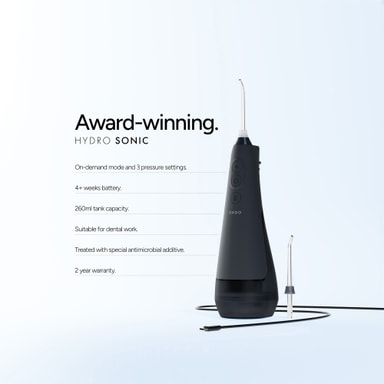Ordo Hydro Sonic+ vannflosser 38673 lades opp på 120 minutter, har tre trykknivåer, og fjerner plakk mellom tenner og tannkjøtt. En 360-graders roterende dyse og hydro-kinetisk-teknologi er ideell for voksne med tannregulering og implantater.Les mer om produktet