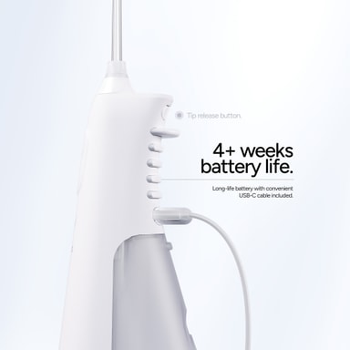 Vannflosseren drives av et litium-ion batteri som kan lades fullt på 120 minutter og varer i opptil 5 uker.