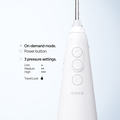 Ordo Hydro Sonic+ vannflosser 38675 fjerner effektivt plakk og matrester mellom tenner og tannkjøtt. Med en 360° roterende dyse og hydro-kinetisk teknologi gir den skånsom, men grundig rengjøring, noe som gjør den ideell for voksne med tannregulering, tannimplantater eller annet tannarbeid.