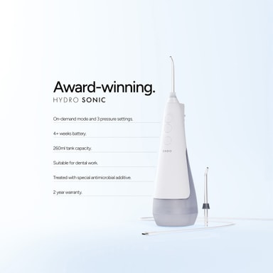 Ordo Hydro Sonic+ vannflosser 38675 lades opp på 120 minutter, har tre trykknivåer, og fjerner plakk mellom tenner og tannkjøtt. En 360-graders roterende dyse og hydro-kinetisk-teknologi er ideell for voksne med tannregulering og implantater.Les mer om produktet