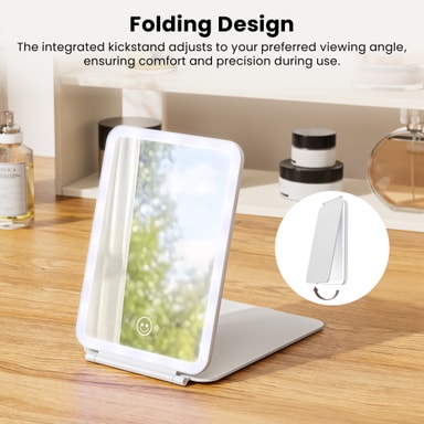 Dette speilet har et elegant design laget av ABS- og HIPS-materialer av høy kvalitet, noe som sikrer både holdbarhet og stil. Dette kompakte speilet måler 19,9 x 13,5 cm, er lett og perfekt for hverdagsbruk, noe som gjør det til et ideelt tillegg til skjønnhetsrutinen din.
