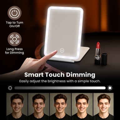 40 LED-pærer gir eksepsjonell belysning for feilfri påføring av sminke og pleie. De kraftige pærene gir jevn belysning, minimerer skygger og fremhever refleksjonen din.