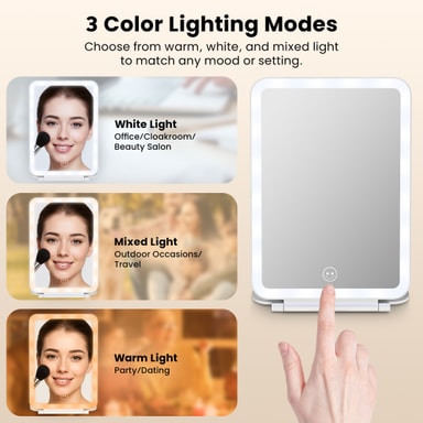 Dette speilet har en intuitiv berøringsfunksjon som gjør det enkelt å veksle mellom tre tilpassbare fargemoduser: varmt, hvitt og blandet lys. Denne fleksibiliteten gjør at du kan skape den perfekte belysningen for enhver anledning.