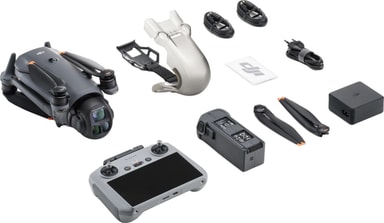 RC 2-fjernkontrollen er designet for profesjonell bruk, med sin 5,5″ FullHD-skjerm som gir klare bilder med opptil 700 Nits lysstyrke, noe som gjør det enkelt å kontrollere og overvåke dronens posisjon og kameravinkler. Dens 2T4R-antenneoppsett gir jevn signaloverføring, og den innebygde minnekapasiteten på 32 GB kan brukes til å ta øyeblikksbilder og klipp umiddelbart, og kan utvides ytterligere via et microSD-kort.