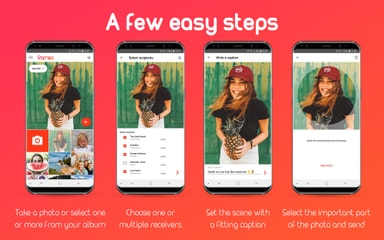 Del dine minner med dine kjære enklere og raskere enn noen gang. Bare ta et bilde og skriv en melding som vises på fotorammen sammen med bildet ditt. Du kan også skrive en bildetekst for å fortelle hva som skjer, og slik la venner og familie vite hva du holder på med. Etter å ha lastet ned Frameo-appen, kan du sende favorittbildene dine direkte til fotorammen fra bokstavelig talt hvor som helst.