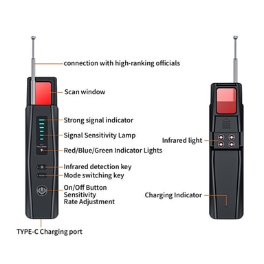 • Trådløs RF-signaldetektor Skjult kameradetektor GPS Tracker Skanneenhet