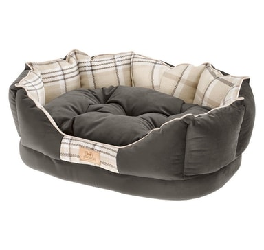Polstret katte- og hundeseng Laget av slitesterkt høykvalitets tartanstoff med myk fløyelskant Sterke konturvegger for å imøtekomme kjæledyret ditt Senket side for å gi din lodne venn enkel tilgang Komplett med en dobbeltsidig pute Kan vaskes heLes mer om produktet