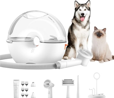 Gi kjæledyret ditt en salongbehandling hjemme med Neakasa S1 Pro pelspleiesett for kjæledyr. Dette kraftverket kombinerer en støvsuger, en avklipper og en trimmer, slik at du kan stelle kjæledyrets pels til perfeksjon med en rekke avtakbare verktøy. Og takket være sugesystemet med ett klikk vil hele prosessen foregå lydløst, noe som gjør pelsstellet til en lek for både deg og din pelskledde følgesvenn.
