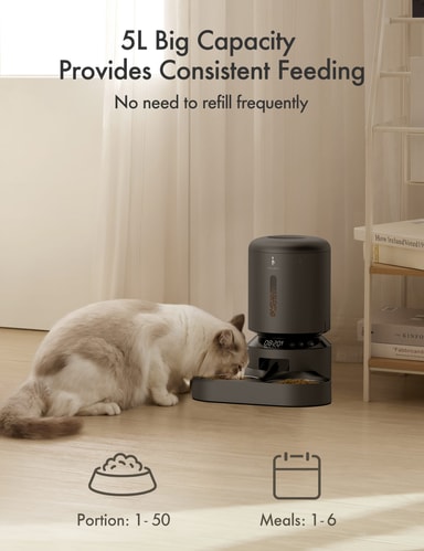 Mat din fireføttede venn på en presis og lett måte med Petlibro Granary dobbelt matbrett automatisk kattemater 5L. Kattemateren er lett å kontrollere med et tydelig display og knapper, og tilbyr muligheter for å dele opp porsjoner i to skåler med en justerbar måltidsdeler. Enheten kobles til en USB-C-port, men har også plass til tre D-alkaliske batterier, som sikrer at kattemateren forblir operasjonell hvis strømmen går. Kattemateren er kompatibel med tørrfor i størrelser fra 2 mm til 15 mm.