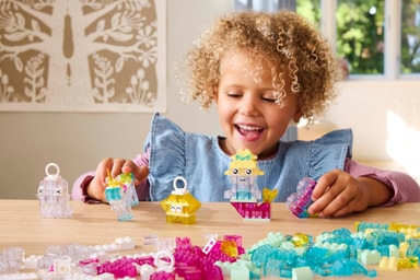 Barn kan starte med å bygge et hjerte, et spøkelse, en havfrue, en stjerne og en enhjørning. I takt med at selvtilliten vokser, kan de bygge et romskip og et stjerneskudd, en sky, fugl, narhval, iskrem og blomst før de går opp ett kreativitetsnivå og bygger et stort slott med en drage. Barn kan gjøre modellene ekstra kreative og glitrende med gjennomsiktige klosser, øye- og munnelementer og opphengsklosser.