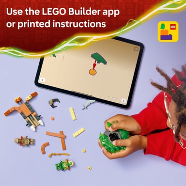 Gjenskap actionfylte scener fra sesong 4 av TV-serien NINJAGO Dragene våkner med kampleken LEGO NINJAGO Lloyd mot Jordmonster-spinner.Les mer om produktet