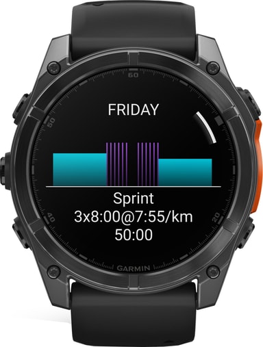 Få personlige treningsplaner, inkludert adaptive 5K-, 10K- og halvmaratonplaner, og øk formen og ytelsen din. Fra avansert styrketrening til løping, svømming eller golf, Fenix 8 tilbyr et omfattende bibliotek av sportsmoduser, og tilbyr detaljert statistikk om tider, tempo, distanser eller hjertefrekvens. Dessuten sporer Body Battery-funksjonen energinivået ditt for å finne de beste tidspunktene for å løpe eller trene. Og takket være dens 10 ATM-rating kan du ta klokken med inn i bassenget eller dusjen uten bekymringer.