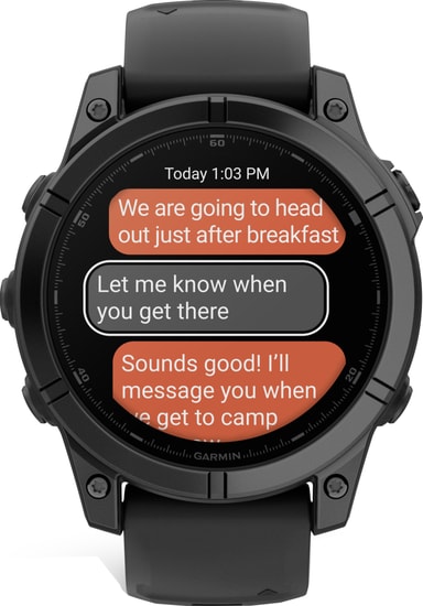 Hold kontakten med familie og venner under alle eventyrene dine, selv når du legger igjen telefonen. Par smarttelefonen din med Fenix E, installer Garmin Messenger-appen og send meldingene direkte fra klokken.