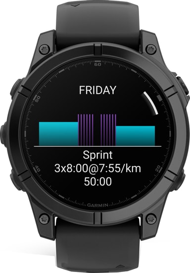 Fenix E kommer med en fantastisk 1,3" AMOLED-skjerm med en oppløsning på 416 x 416 piksler, og gir deg et detaljert og intuitivt brukergrensesnitt, levende farger og dype svarte farger. Klokken er dekket med Corning Gorilla Glass og holder seg beskyttet mot riper og støt.