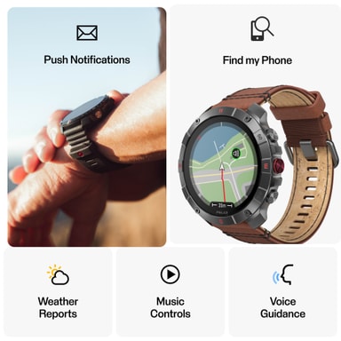 Med Bluetooth-tilkoblingen har du enkel tilgang til varsler, telefonsamtaler, musikkontroller, og mye mer – alt uten å måtte ta tak i telefonen din. Polar Grit X2 Pro har også justerbare menyer og perspektiver, slik at du kan tilpasse måten informasjon blir vist frem på. Stemmeveiledning via Polar Flow gjør det enda mer praktisk å bruke enheten mens du trener.
