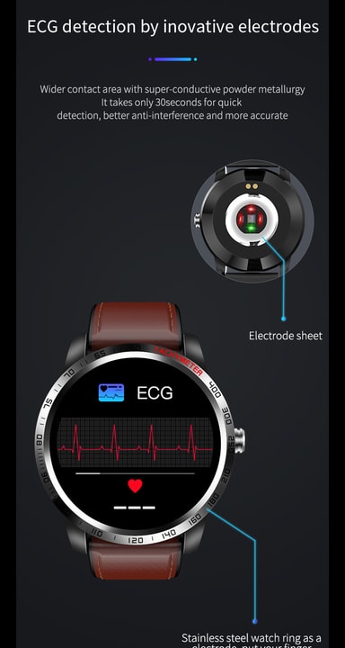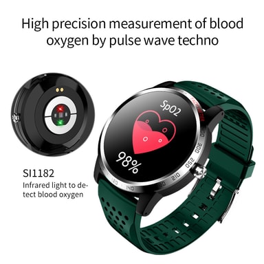 Ergonomisk design med stor fargeskjerm: Stor avansert 1,3 tommers skjerm i fullfarge, med høy kontrast, bred fargeskala og høy oppløsning. Klokken er slank, i eloksert aluminium som veier lite og med en silikonreim av høy kvalitet, et materiale som behander huden godt og er behagelig å ha på. Sportsklokken har stor og tydelig fargeskjerm, og fokuset er på trening og helse. Måler blant annet blodtrykk og hjertefrekvens, og har forskjellige sportsprogram. IP67 vanntett.