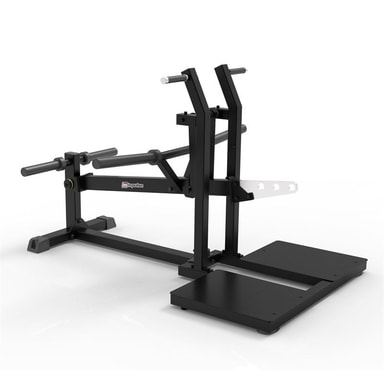 Tren virkelig tungt med en belt-squat fra Impulse. Separat hevet plattform med godt grep og faste håndstøtter, slik at den som trener kan fokusere fullt på å utføre korrekte knebøy. Med et enkelt håndtak frigjøres vekten – maskinen er bygget for at man skal kunne trene alene uten nødvendigvis å trenge assistanse. Det finnes flere hull der man kan feste beltet – uansett hvor høy man er, kan beltet justeres til riktig høyde. I den fremre delen av maskinen finnes det også holdere til oppbevaring av vektskiver. IFP er en svært kompetent og effektiv plateloaded-serie. Godstykkelse: 2,5 og 3 mm Dipsbelte inkludert.
