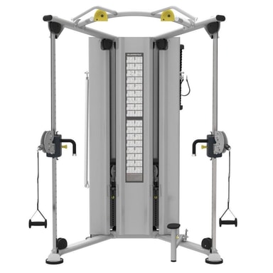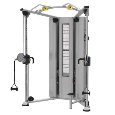 IT9530 er en frittstående traktor / funksjonell trener med doble vektmagasiner. Maskinen har en bred base, noe som betyr at den er stabil på gummiføtter som også kan justeres i høyden for å kompensere for ujevnheter i gulvet. Rammen er laget av 3 mm stål som er pulverlakkert i flere trinn for å motstå rustangrep. Remskiven justeres enkelt fra sin laveste posisjon til toppen med bare ett håndgrep. Linjehjulet er plassert i hvilken som helst høyde på stolpen som er 1785 mm, og her kan du velge ønsket treningsvinkel fra 1 til 36 grader. Vektmagasinene er 2 x 90 kg, toppvekten er bare 2,5 kg, noe som betyr at du også kan trene med lette vekter. Vektpakken består av 19 mm solide stålplater. I tverrstangen er det flere forskjellige hakehåndtak, og i bunnen av maskinen er det et trinn som gjør det lettere å komme opp til tverrstangen. Egnet for profesjonelle treningssentre.