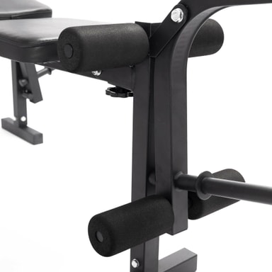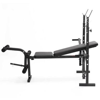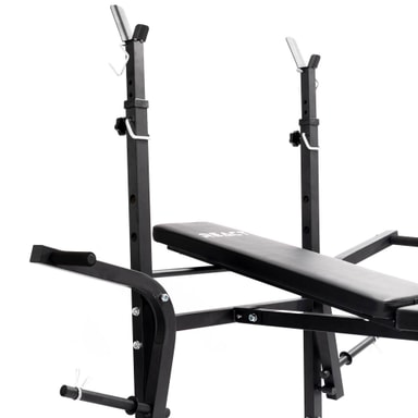 Med denne justerbare treningsbenken kan du trene alle muskelgruppene effektivt og trygt! Den sterke og robuste stålrammen gir treningsbenken en balansert følelse. Det kunstige lærpolstrede setet og støttene for rumpe og lår øker komforten ved bruk. Håndtakene på sidene av benken lar deg trene brystmusklene på en rekke forskjellige måter.