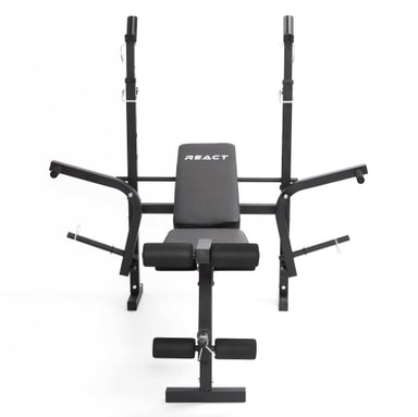 Den maksimale vekten (brukerens egen vekt + vekter brukt for trening) av denne høykvalitets React treningsbenken er 160 kg. Benken måler 158 cm i lengden og 127,5 cm i bredden. Den anbefalte brukerhøyden for denne allsidige treningsbenken er 150-190 cm.