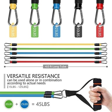 Med de 5 medfølgende båndene kan man koble på flere bånd samtidig, og da få 30 ulike typer av motstand, alt fra lett, til middel og kraftig motstand for de mest avanserte utøverne.