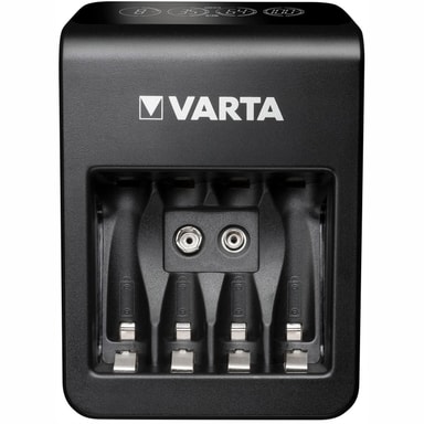 VARTA LCD Plug Charger + er utstyrt med 4x AA 2100mAh oppladbare batterier og kan lade AA / AAA / 9V oppladbare batterier og en USB-enhet samtidig. De omfattende sikkerhetsfunksjonene inkluderer Minus Delta V cut-off, kortslutningsbeskyttelse, alkalisk og dårlig celleindikasjon og en sikkerhetstimer. Laderen er også utstyrt med en LCD-skjerm som indikerer ladningsnivåer og gjør LCD Plug Charger + til et godt og pålitelig valg for alle dine oppladbare batterier.