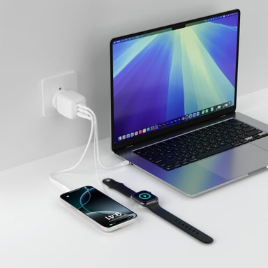 Laderen kan lade iPhone 16 Pro til 50% på bare 27 minutter, og Samsung S25 på 31 minutter. Den er også egnet for lading av Chromebooks, iPads og MacBook Air, noe som gir bred kompatibilitet.