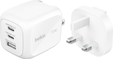 • Belkin 70W Tri-port vegglader (hvit)