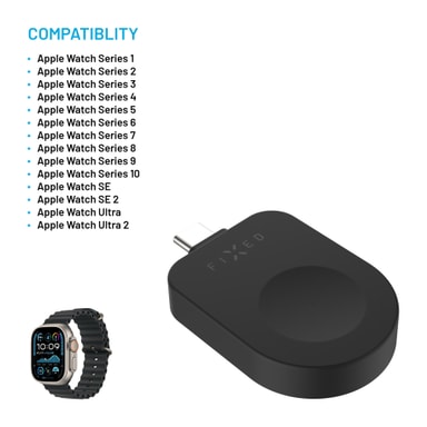 • Fixed Apple Watch trådløs USB-C lader (sort)