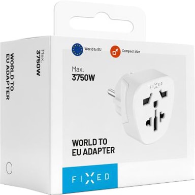 Fixed Europa til verden støpseladapter forvandler EU-støpsler til universelle adaptere, og støtter plugger fra Storbritannia, USA, Australia, og Asia med en kapasitet opptil 3750W. Kompakt og nyttig for globale reiser.Les mer om produktet