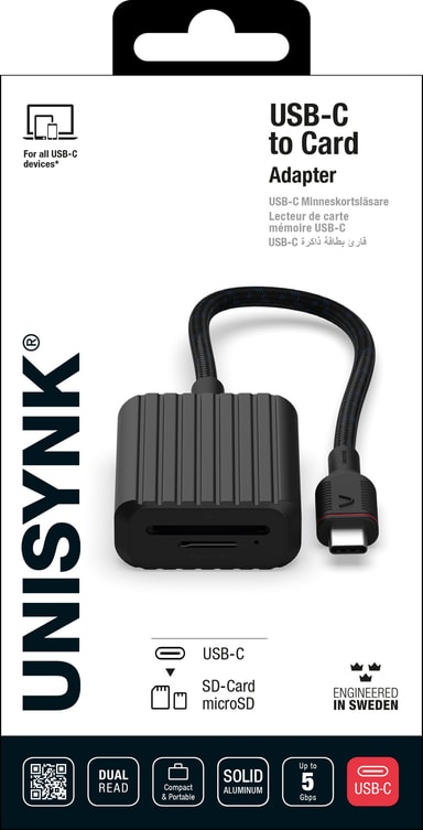 • Unysink USB-C til Memory Card adapter 10381 (sort)