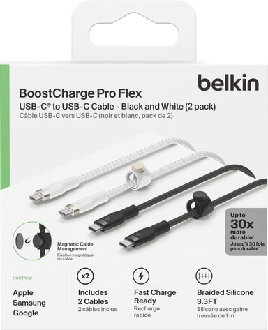 • Belkin Twin USB-C til USB-C kabel 1 m (sort/hvit/2-pk)