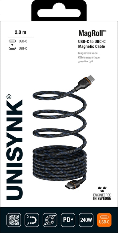 • Unisynk MagRoll Magnetic 240W USB-C-kabel (2m)