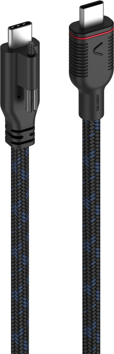 Unisynk USB-C-kabel lar deg opprettholde en stabil tilkobling til din Pro AV Dock-enhet, som lar deg lade med opptil 140W effekt, og overføre opptil 2x4K-video ved 60Hz. Den har en låseskrue, som sikrer at forbindelsen din er stabil.