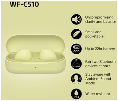 • Sony WF-C510 helt trådløse in-ear hodetelefoner (gul)