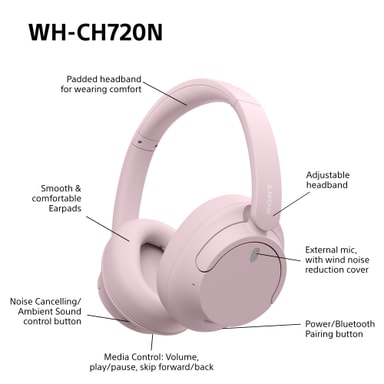 Sony WH-CH720N trådløse around-ear hodetelefoner (rosa)
