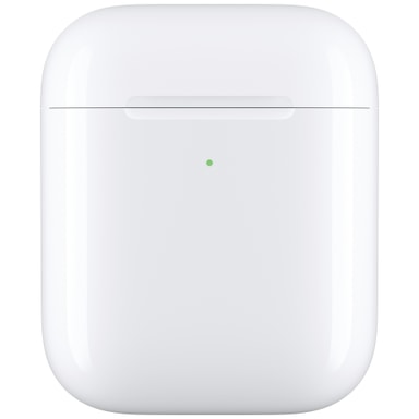 Med et trådløst ladeetui fra Apple blir det enda enklere å lade dine trådløse Apple AirPods hodetelefoner. Ladeetuiet gir deg opptil 24 timer ekstra spilletid og lades ved å plassere det på hvilken som helst trådløs Qi-kompatibel ladematte. Ladeetuiet kan også lades ved hjelp av Lightning-porten i bunn.
