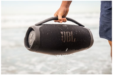 JBL Boombox 3 Wi-Fi er IP67-sertifisert, som vil si at den er vann- og støvtett. Det gjør at den bærbare høyttaleren kan håndtere nesten alle miljøer — fra en fest ved bassenget til en lang dag på stranden.