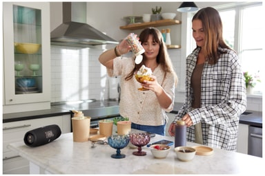 Still inn din lydopplevelse på en enkel og praktisk måte med JBL One-smartappen som lar deg sette opp høyttaleren, stille inn musikken og bla gjennom strømmetjenester på en behagelig måte.
