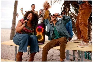 Føl hver eneste vibrasjon i favorittmusikken din når den utrolige lyden fra JBL Pro Sound og den forbedrede bassen rocker gjennom hele festen. Juster musikken til perfeksjon med de avanserte ytelsesinnstillingene.