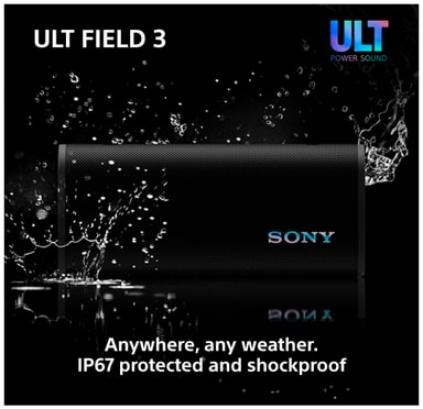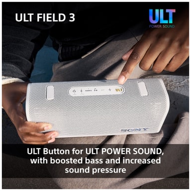 Sony ULT Field 3 bærbar høyttaler leverer intens og kraftig lyd i en kompakt og robust innpakning. Koble til smartenhetene dine via Bluetooth og nyt favorittmusikken eller podkasten din. Med 24 timers spilletid, ULT Power Sound og IP67-klassifisering for støv- og vanntetthet, er denne bærbare høyttaleren den perfekte følgesvennen for å lytte til musikk hjemme, utendørs eller på reise.