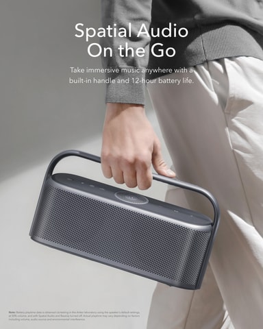 Soundcore Motion X600 trådløs bærbar høyttaler gir deg en bedre lydopplevelse med sømløs strømming og romlig lyd. Den har kraftige 50 W-høyttalere, IPX7-klassifisering og en spilletid på opptil 12 timer.Les mer om produktet