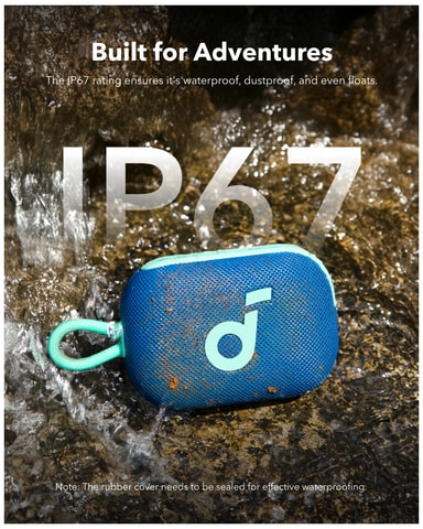 IP67-klassifiseringen betyr at høyttaleren tåler det meste av naturens elementer. Høyttaleren er helt støv- og vanntett og kan til og med flyte på vann.