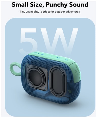 Soundcore Select 4 Go bærbar trådløs høyttaler er ideell å ta med seg på reise, og leverer musikk av høy kvalitet i et kompakt design som er en fryd for øyet. Du kan lytte i opptil 20 timer om gangen og koble sammen to høyttalere for å få en trådløs stereo-opplevelse. Med IP67-klassifisering og et svært bærbart design kan du ta med deg høyttaleren hvor du vil.