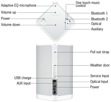 Med Hyperboom blir musikkdeling en enkel affære. Koble til opptil fire forskjellige enheter og enkelt bytt mellom dem uten å måtte pause musikken. Koble til via to Bluetooth innganger, én aux og én optisk.