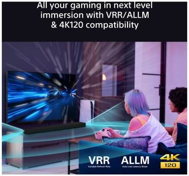 BRAVIA Theatre Bar 9 støtter de nyeste spillformatene, inkludert Variable Refresh Rate (VRR) og Auto Low Latency Mode (ALLM) i HDMI 2.1, samt 8K og 4K120 Passthrough.