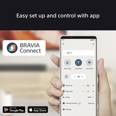 Klar til bruk rett ut av esken med full kontroll over hele hjemmeunderholdningssystemet ditt via Sony | BRAVIA Connect-appen på smarttelefonen din.