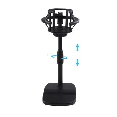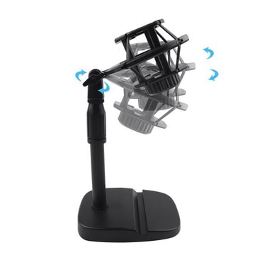 Dette mikrofonstativet er en funksjonell og sofistikert løsning for alle som leter etter høykvalitets lydopptak med brukervennlighet. Med en roterbar mikrofonholder kan du rette mikrofonen akkurat dit du trenger den, noe som er ideelt for podcasting, musikkproduksjon eller nettkommunikasjon. Høyden på stativet er justerbar og låsbar, slik at du kan tilpasse den til dine behov og preferanser. Den solide basen sørger for at stativet står stødig, selv når mikrofonen er plassert i en utvidet vinkel. Dette bordstativet er ikke bare praktisk, men også et stilig tillegg til skrivebordet eller studioet ditt.