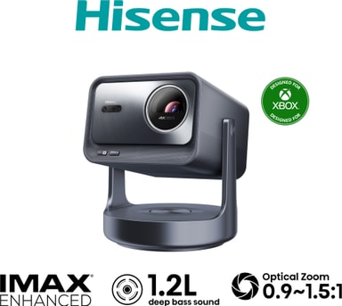 Hisense C2 ULTRA Laser Mini projektor leverer høykvalitets bilder, utrolig lyd og multimedia-bekvemmelighet i en lett pakke. IMAX Enhanced Dolby Vision og Atmos gir en kinoopplevelse uansett hvor du er. Gimbal-designet gir større frihet i plassering, mens den optiske zoomen gjør det enda enklere å sette opp det perfekte bildet. Og ikke bekymre deg for levetiden, for med opptil 25.000 timers lampetid kan denne projektoren være ved din side lenge.